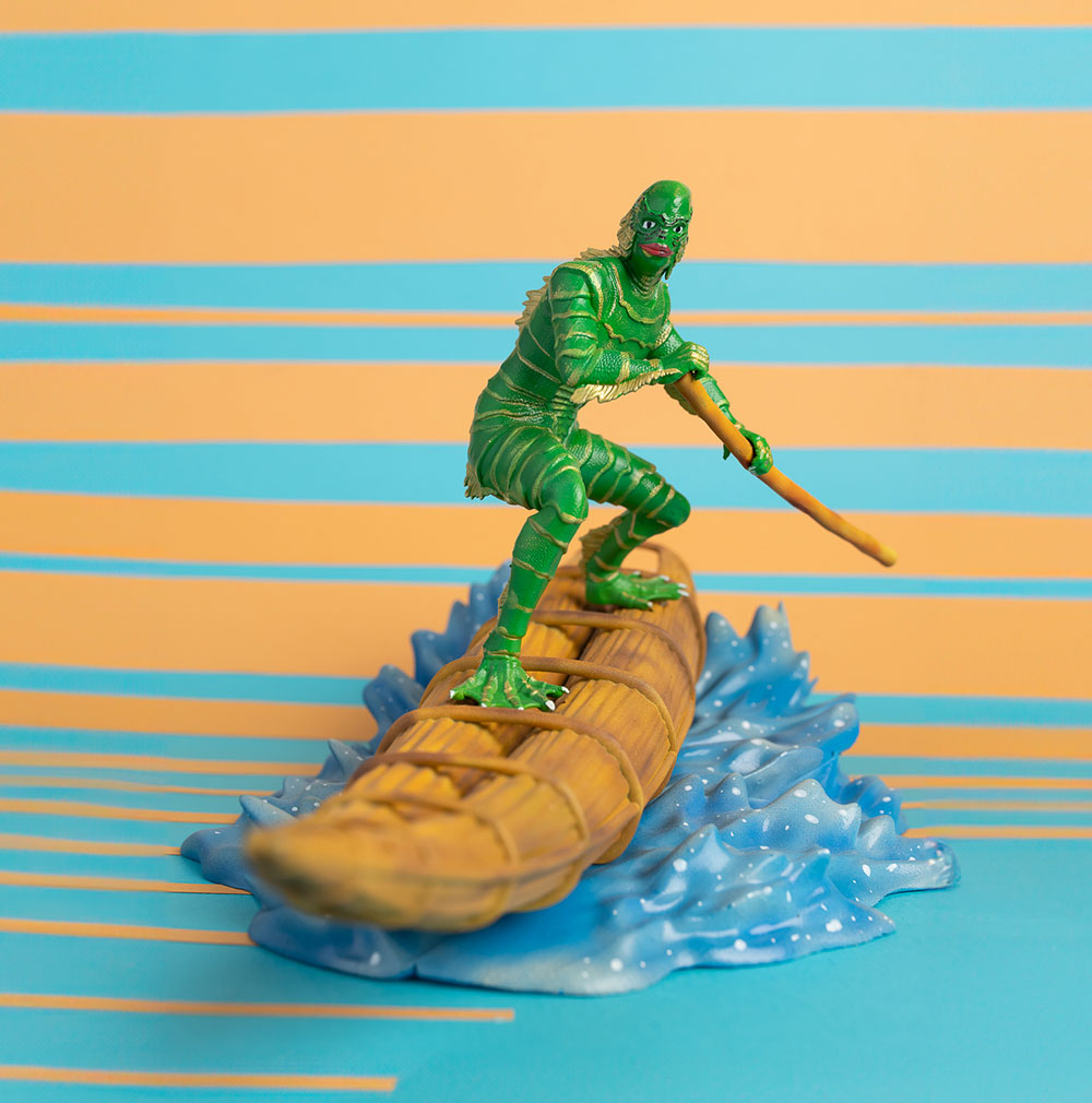 La criatura del pantano dejó el Amazonas y se fue al norte peruano a probar suerte con las olas. Montando un tradicional caballito de totora, la criatura del pantano cambió de nombre y ahora es La Criatura de Huanchaco Beach. Este toy es un tributo al horror al trash y al surf rock!